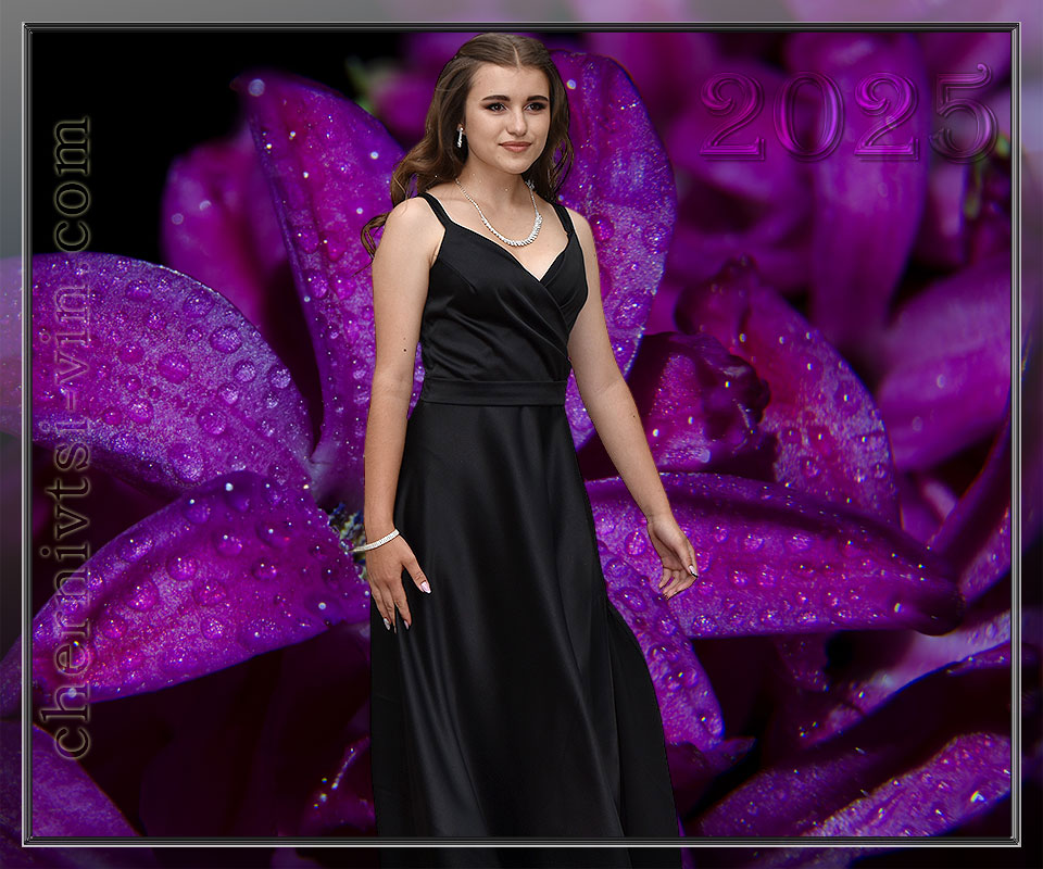 випускниця Сокільської школи, Чернівецький район 1923-2020 випуск-2025, Сокільський ліцей випускниця у квітах випускний вечір у 2025 році, село Сокіл Чернівецької громади