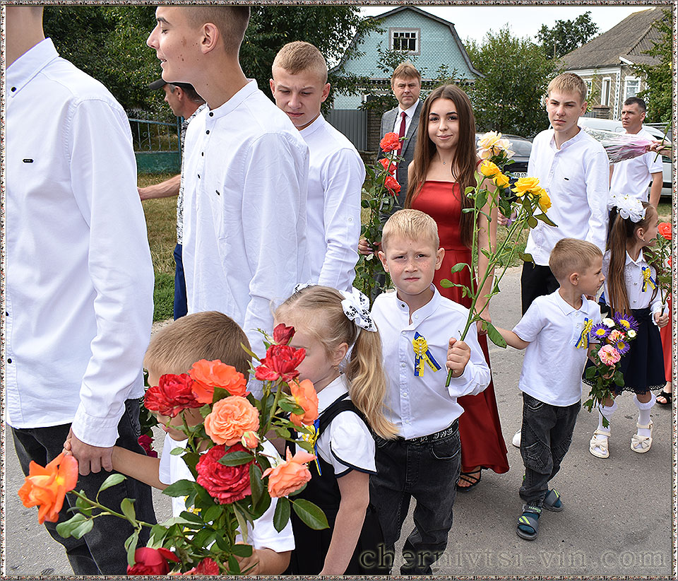 свято першого дзвоника, Сокільська школа свято 1-го вересня, с.Сокіл свято Першого дзвоника першокласник Максим Мельник з букетом школярі на День знань, Чернівецький район 1923-2020 свято першого дзвоника в селі Сокіл пам'ятник загиблим героям, с.Сокіл покладання квітів, Чернівецький район 1923-2020