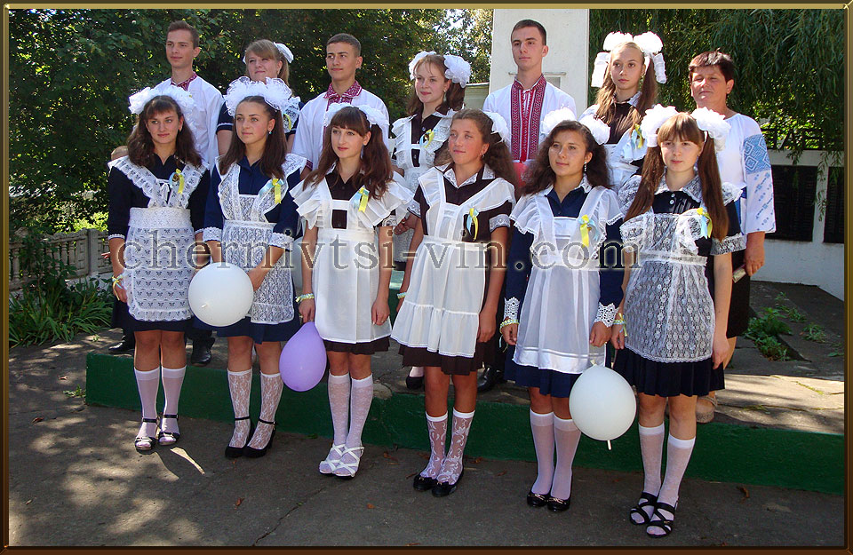 Перший дзвоник у Сокільській школі, Чернівецький район фото на згадку, Перший дзвоник у школі села Сокіл Перший дзвоник в Сокільській школі старшокласники фотографуються, Чернівецький район