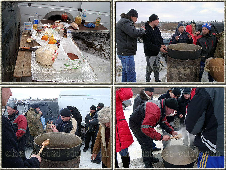 купання в крижаній воді на Водохреща, смт Чернівці, Чернівецький район купання у воді на Хрещення Господнє, смт Чернівці козацький куліш на Водохрещі у Чернівецькому районі козацький куліш на святі Водохрещі в смт Чернівці