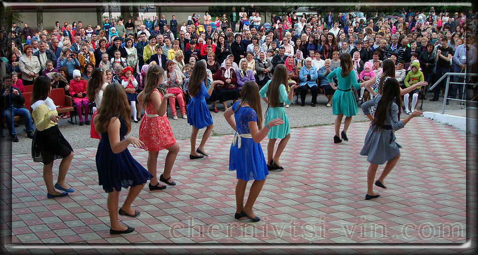 танцюють дівчата на Великодньому концерті в смт Чернівці біля адміністрації