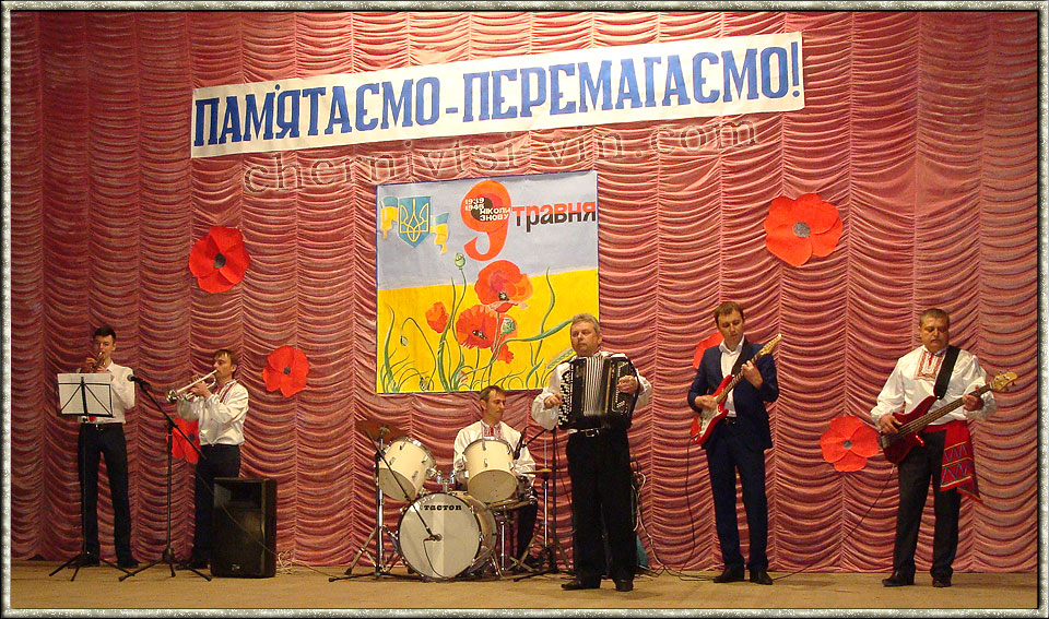 ансамбль грає на урочистих заходах з нагоди Дня Перемоги у війні в смт Чернівці Андрій Мординський, Іван Демид, Альона Бровко, День Перемоги, смт Чернівці