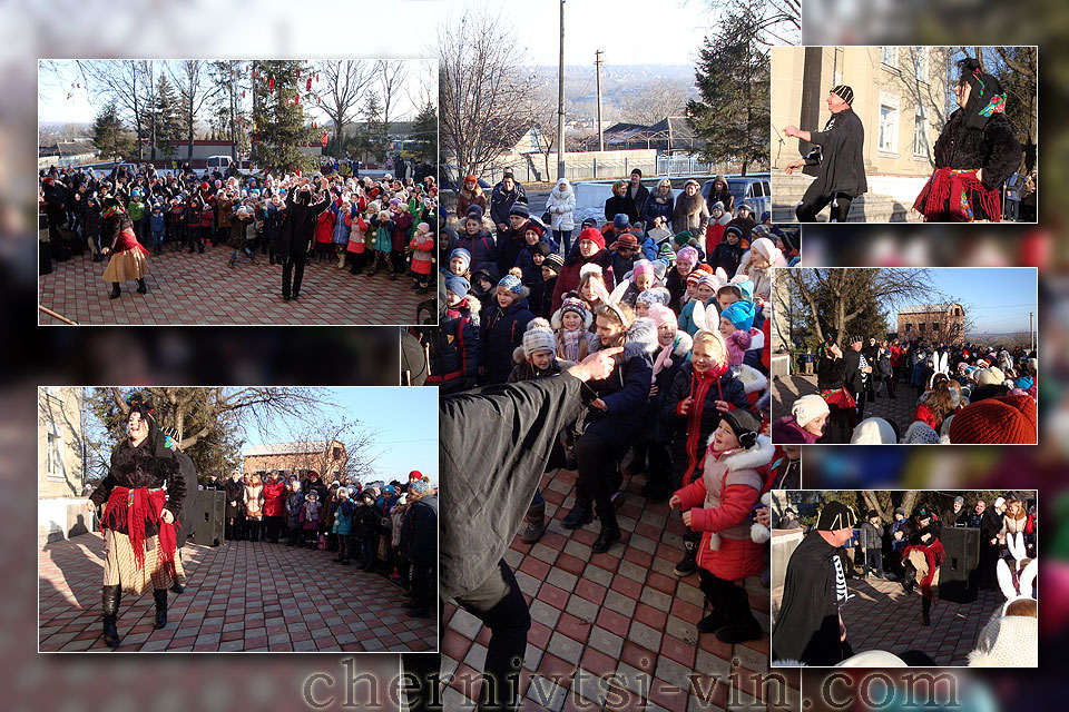 Відкриття новорічної ялинки, смт Чернівці, Чернівецький район Наталя Дону, Андрій Мординський, свято Новорічної ялинки, смт Чернівці Новорічна ялинка в Чернівцях Чернівецького району хоровод довкола новорічної ялинки, район Чернівецький