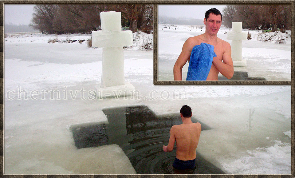 Водохреще, смт Чернівці свято Водохреща, річка Мурафа, смт Чернівці Чернівецький район купання біля хреста на Водохреще, Чернівецький район купання в крижаній воді на Водохрещі у Чернівецькому районі Артур Колісніченко, Олександр Слободянюк на Водохрещі, Чернівецький район