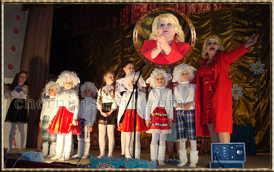 коза у виставі Вовк та семеро козенят, смт Чернівці, Чернівецький район глядачі на виставі про Вовка та семерих козенят в смт Чернівці, Чернівецький Будинок культури дитяча вистава Вовк та семеро козенят в смт Чернівці у Чернівецькому районі музична вистава в Будинку культури смт Чернівці творчий колектив Чернівецького Будинку культури вистава для дітей в Чернівецькому районному Будинку культури