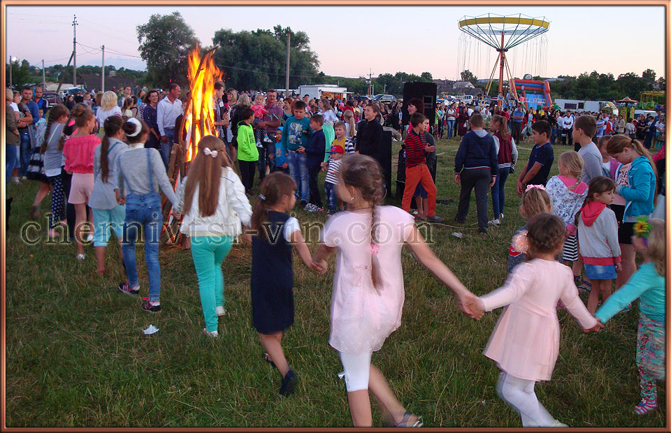 палає багаття на Івана Купала в селі Мазурівка, Чернівецький район Юлія Олегівна Антонюк, Івана Купала, с.Мазурівка, район Чернівецький хоровод біля купальського вогнища на Івана Купала в селі Мазурівка Чернівецького району