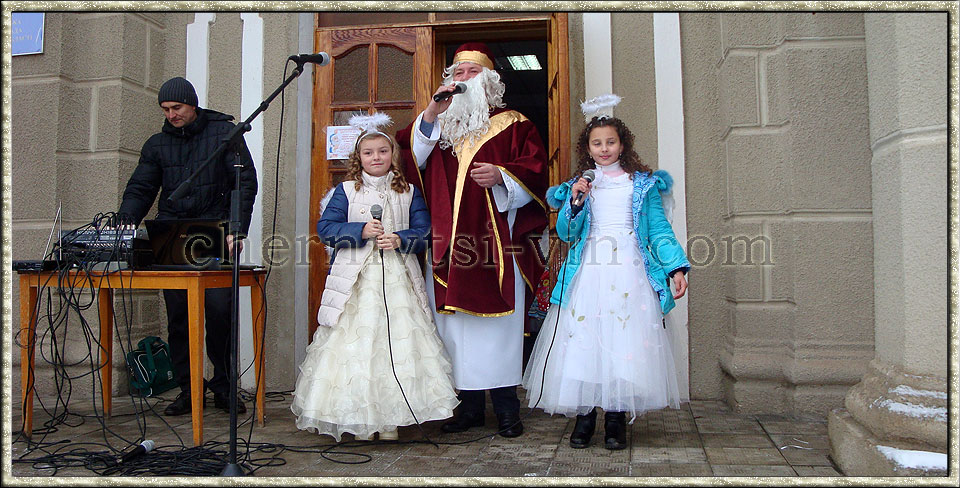 Олександр Марцісь, Чернівецький район Олег Антонюк, урочистості з нагоди Дня святого Мтколая відкриття головної ялинки району в смт Чернівці день святого Миколая, відкриття ялинки у Чернівецькому районі святий Миколай і янголи, смт Чернівці, Чернівецький район відкриття новорічної ялинки у Чернівецькому районі Ольга Бабій фотографує святого Миколая
