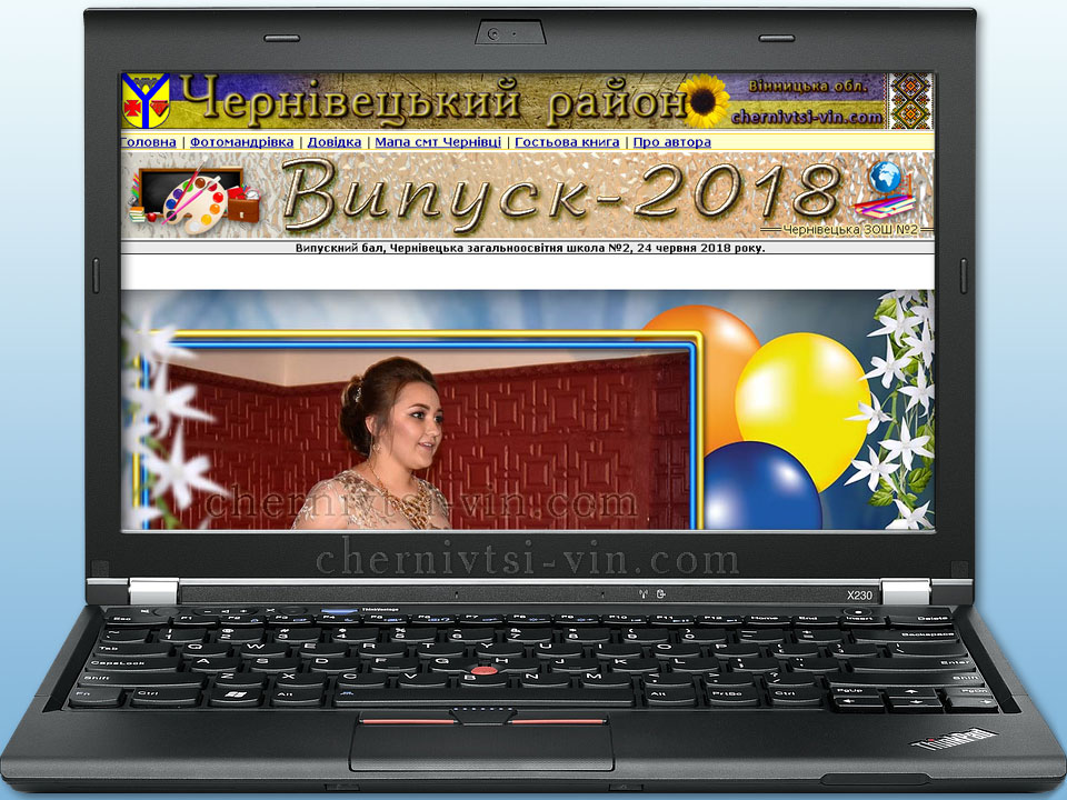 випускний бал, Чернівецька школа №2, Чернівецький район випускниця і ноутбук