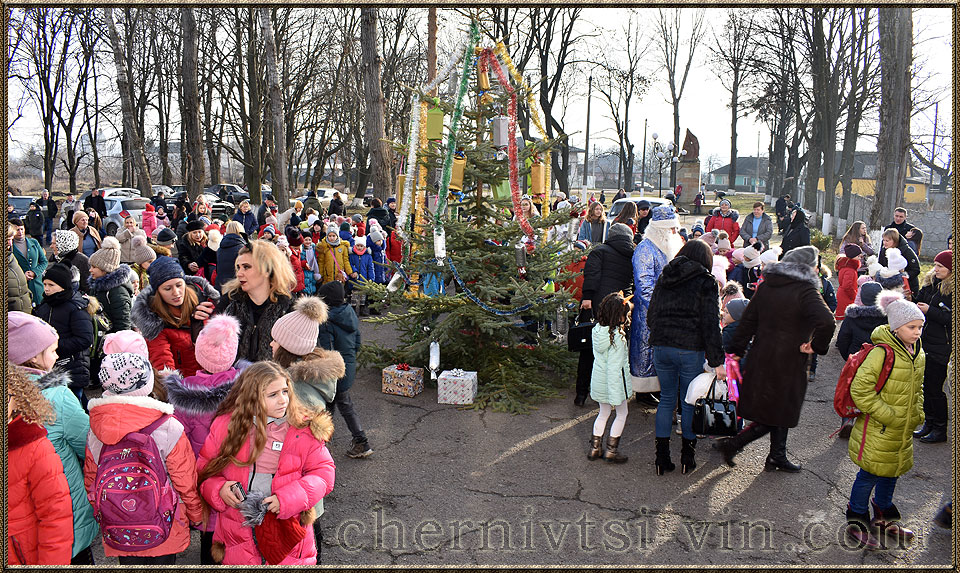 Дід Мороз і Снігуронька, фото на згадку, Чернівецький район персонажі святкової новорічної вистави, район Чернівецький Чернівецький районний Будинок культури, смт Чернівці новорічна ялинка у Чернівецькому районі Дід Мороз і Снігуронька