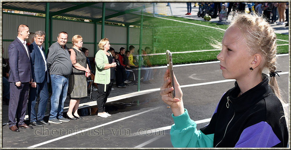 звучить гімн України, смт Чернівці урочисте відкриття спортмайданчика у Чернівецькому районі танцювальний подарунок футболістам, район Чернівецький футбольна команда, Чернівецький район