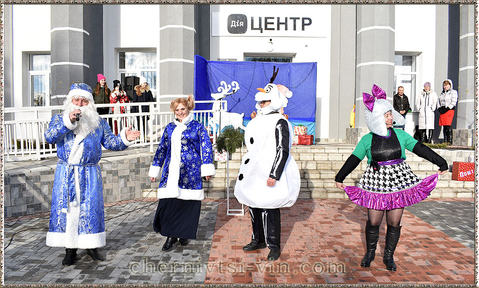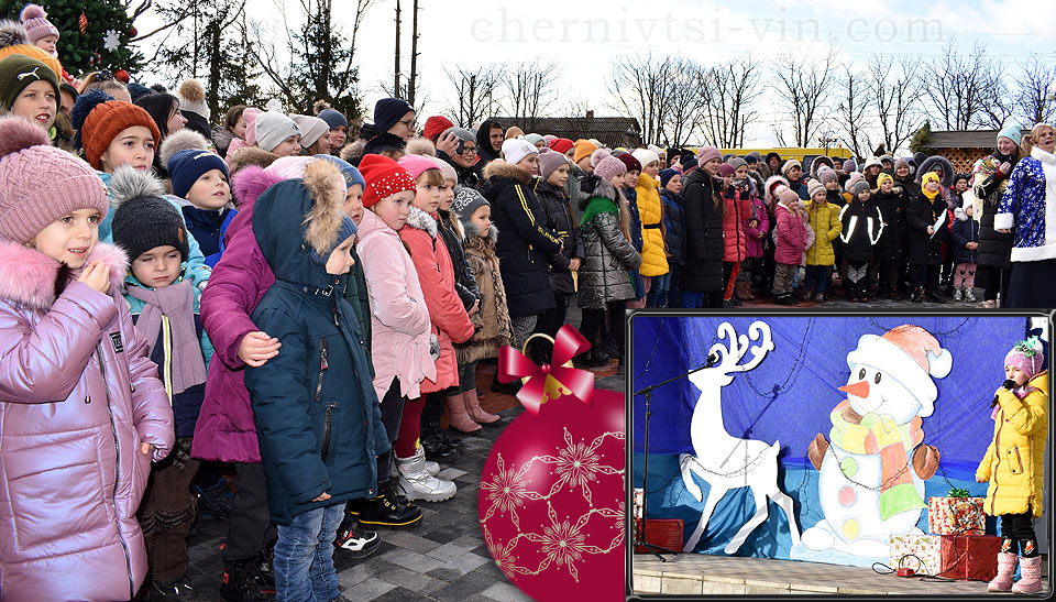 різдвяна святкова програма, смт Чернівці, Чернівецька громада святий Миколай вітає дітей, колишній Чернівецький район 1923 - 2020 Лариса Білозір, Олена Бень, смт Чернівці святкування відкриття ялинки в смт Чернівці, Чернівецький район святкова вистава різдвяна вистава для дітей в смт Чернівці