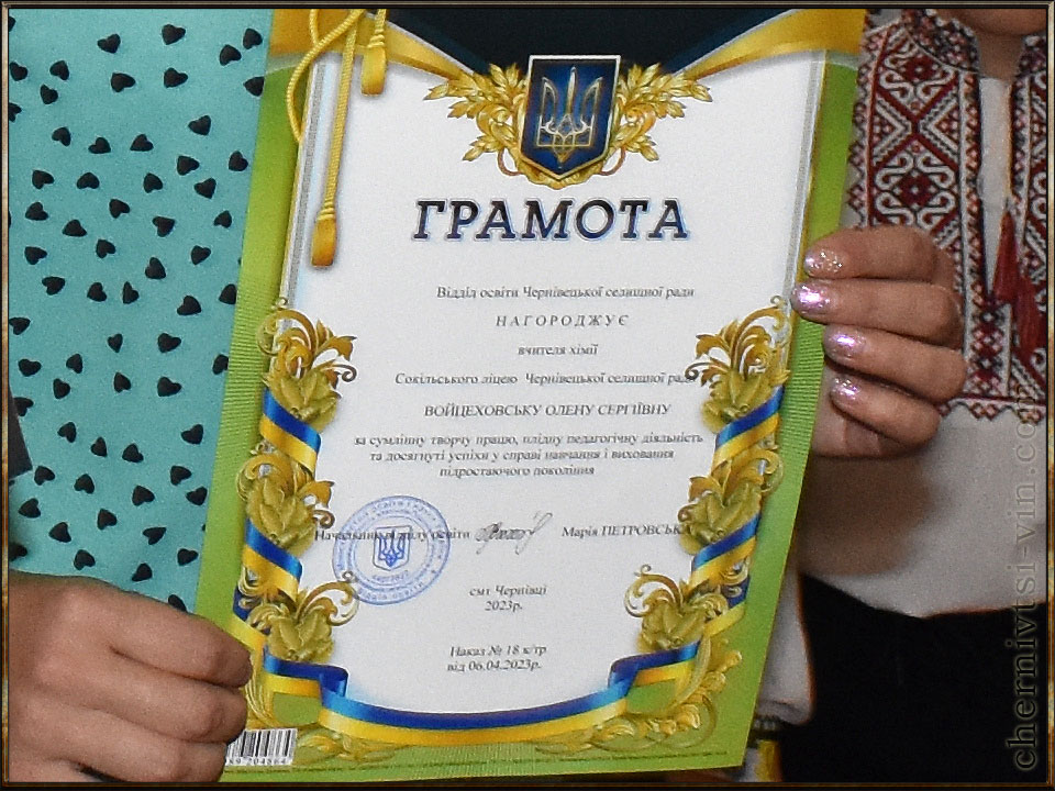 Віта Воїнська, Олександр Марцісь, Сокільська школа, Чернівецька територіальна громада вручення подарунків першокласникам, с.Сокіл, Чернівецький район 1923-2020 директор Сокільської школи Олександр Марцісь подарунки першокласникам, Сокільська школа, Чернівецька ОТГ перший клас Сокільської школи, 1-ше вересня, свято першого дзвоника грамота, с.Сокіл, Чернівецька громада нагородження грамотами, Чернівецька ТГ вручення грамот, с.Сокіл, Чернівецька територіальна громада нагородження грамотою Валентина Гриняк, громада Чернівецька