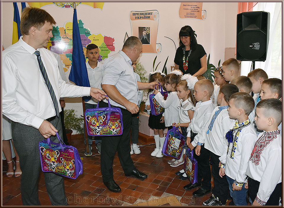 наказ, Сокільський ліцей, Чернівецька селищна рада Леонід Вітковський, Чернівецька селищна рада вітання учениці, Чернівецька громада подарунки для першокласників, Чернівецька громада вручення подарунків школярам, с.Сокіл, Чернівецька територіальна громада привітання першокласникам Леонід Брухаль, кадр фотоплівки, Чернівецька ТГ