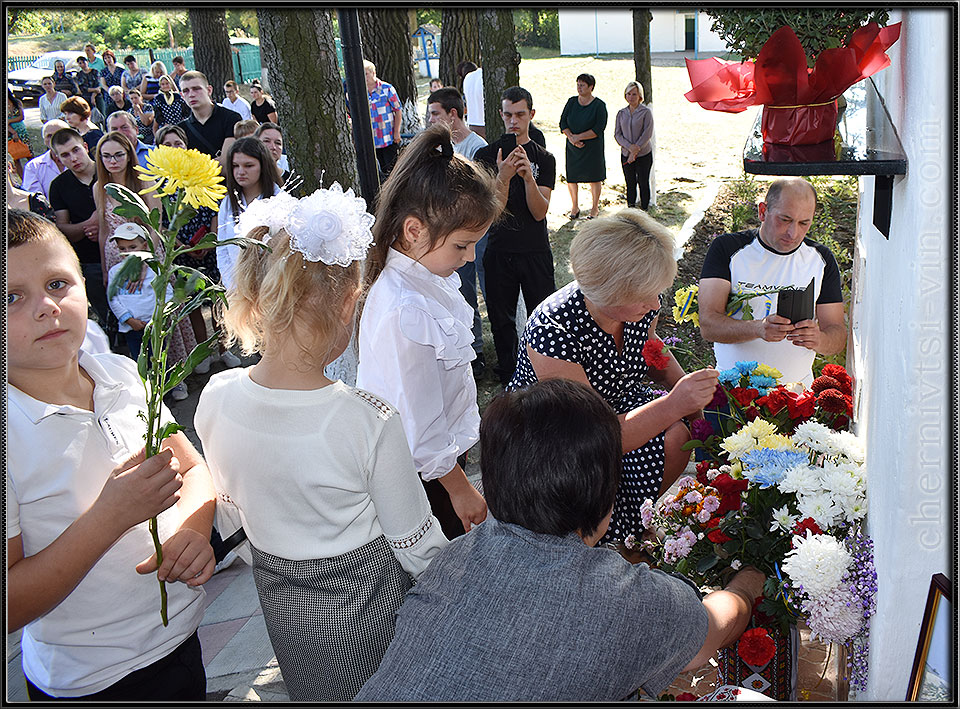 відкриття меморіальної дошки, Чернівецький район 1923-2020 Вінницької області промова, Чернівецький район 1923-2020 дівчина читає вірш, с.Біляни школяр з мікрофоном, село Біляни відкриття меморіальної дошки, Чернівецький район Вінницької області відкриття меморіальної дошки, с.Біляни покладання квітів до меморіальної дошки, Чернівецький район 1923-2020 квіти до меморіальної дошки, село Біляни