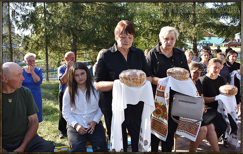 хліб на рушнику, Чернівецький район 1923-2020 Вінницької області святий хліб, Чернівецький район 1923-2020 цілуємо хліб, с.Біляни жінки тримають хліб родини загиблих воїнів, Чернівецький район Вінницької області