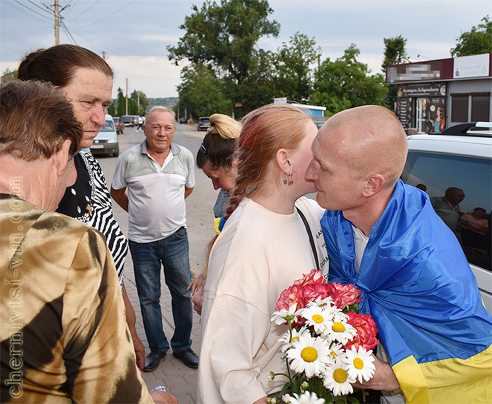 10 липня, надвечір, наш захисник прибув в смт Чернівці, скориставшись послугами маршрутного перевізника сполученням "м.Київ - смт Чернівці". Урочиста зустріч героя, який витримав пекло російського полону, відбулась біля магазину, де багато тортів. Щаслива близька родина Андрія не стримувала своїх почуттів, радісно вітаючи воїна з поверненням до Чернівецької громади. Потім поїхали в село Сокіл... |