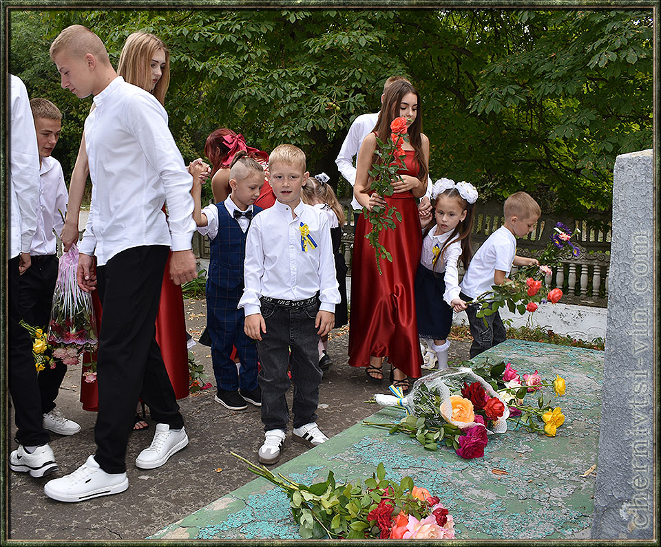 свято першого дзвоника, Сокільська школа свято 1-го вересня, с.Сокіл свято Першого дзвоника першокласник Максим Мельник з букетом школярі на День знань, Чернівецький район 1923-2020 свято першого дзвоника в селі Сокіл пам'ятник загиблим героям, с.Сокіл покладання квітів, Чернівецький район 1923-2020