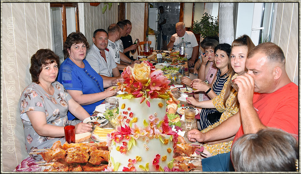 за святковим столом у Чернівецькому районі жінки у квітах, фото на згадку, Чернівецький район чарівні жінки, село Сокіл Оксана Шульга, Ніна Мельник